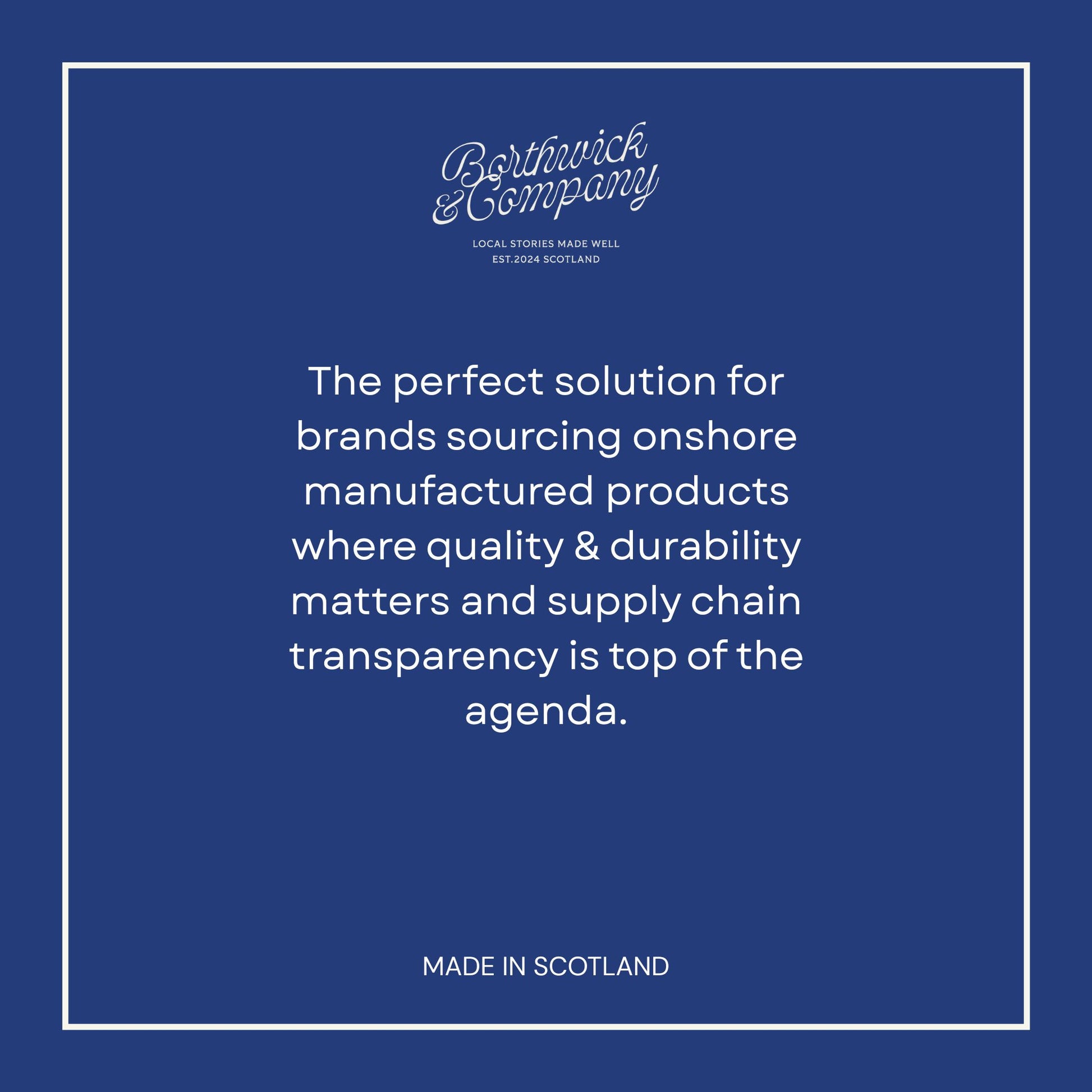 PRODUCTION / PROVENANCE: Made in Scotland / If you are BCorp, contact the team for full audit information / We are a zero waste company and each order is made fresh.